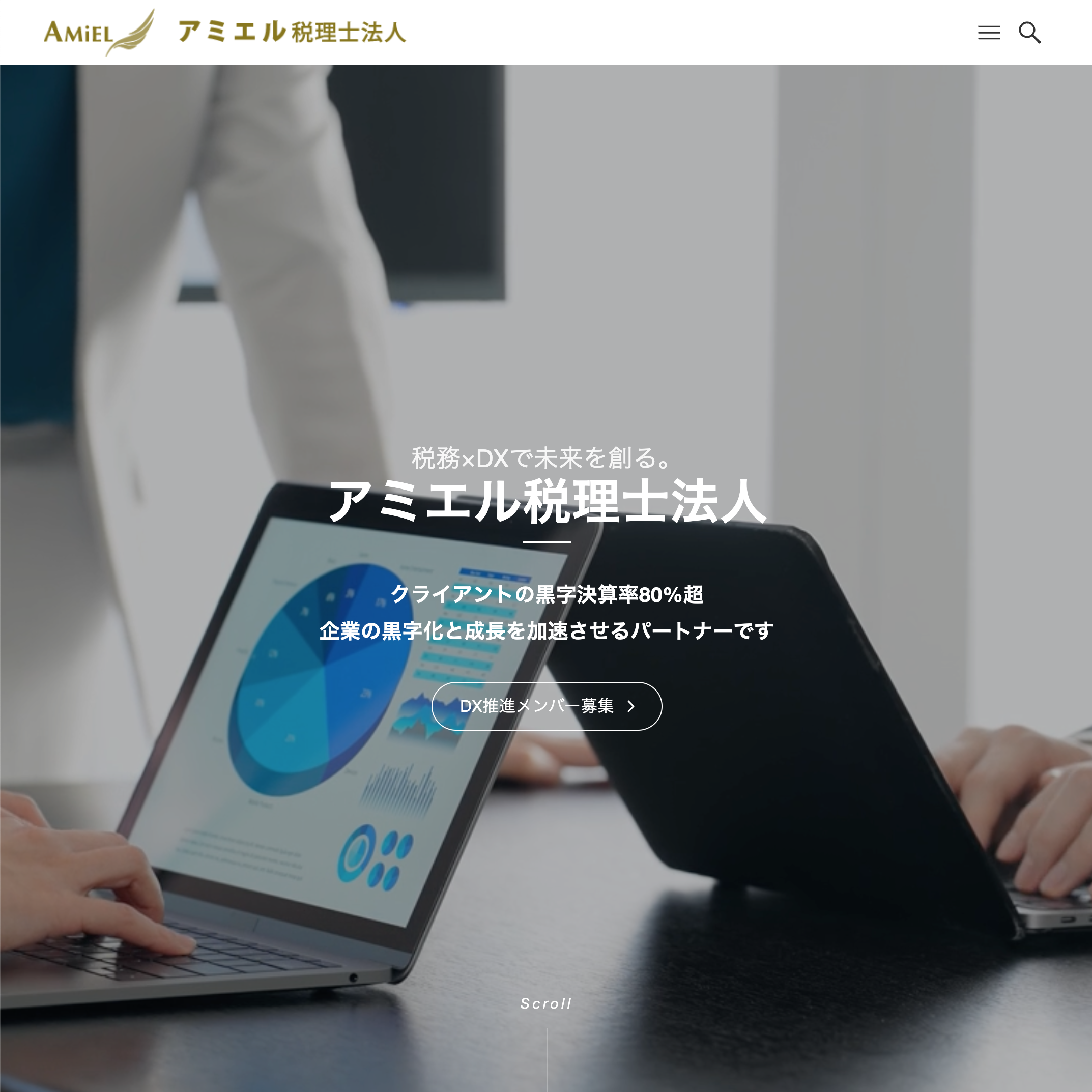 2020年よリアミエル税理士法人のインハウスデザイナーとして、法人と運営する茶房のWEB全般とパンフレット、ポスター等の紙媒体のデザインを担当。紙とWebをトータルでデザインします。